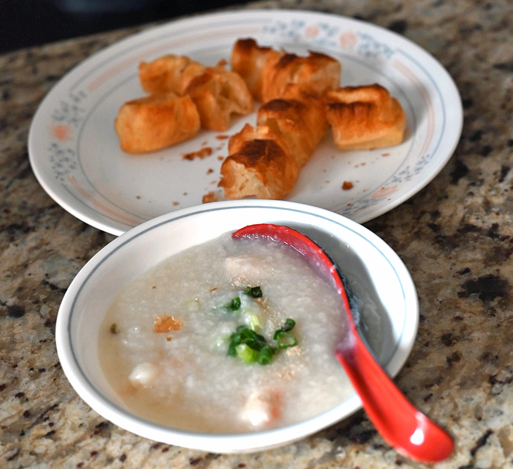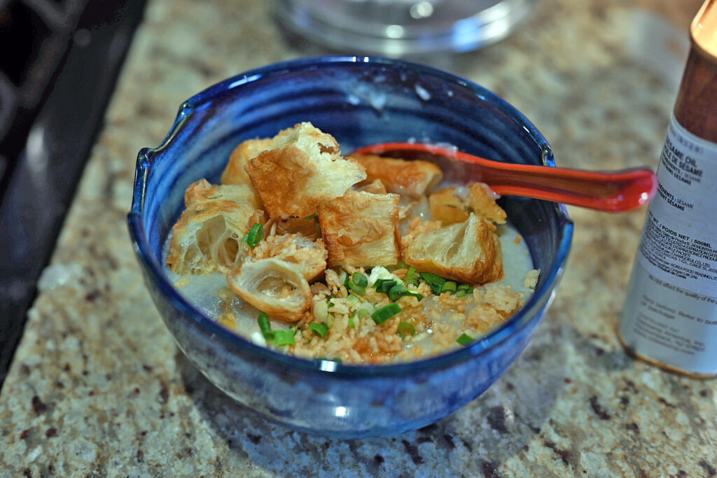 Nowadays, I don’t buy congee while out at a restaurant. It’s too simple for the price, in my opinion. I suppose if it were with lobster or some other thing that would be more work to get those ingredients, I might. But there are often so many other things that my tastebuds want when I go out to eat at those Cantonese greasy chopstick places.